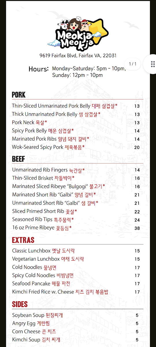 Welcome to Meokja Meokja, a delightful Korean BBQ destination nestled in the heart of Fairfax, VA. Located at 9619 Fairfax Blvd, this charming eatery invites you to experience the rich flavors and vibrant atmosphere of authentic Korean barbecue.